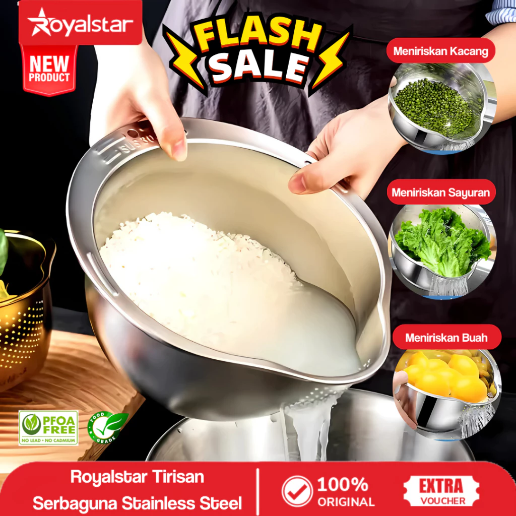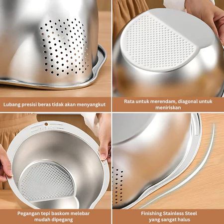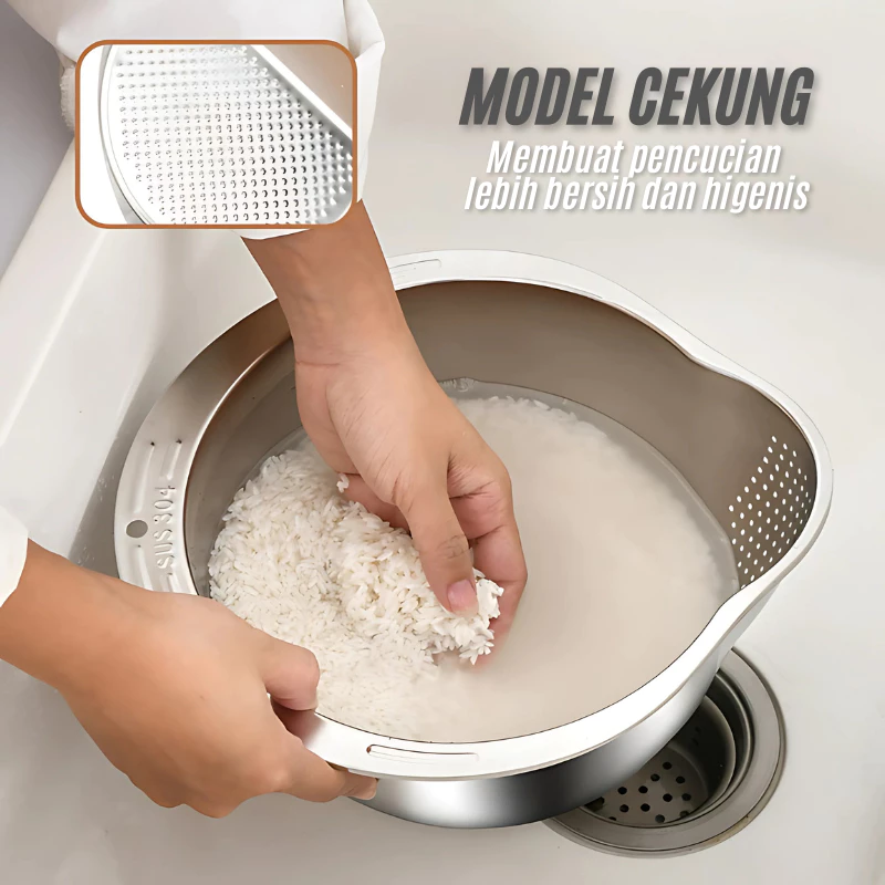 Baskom Import Stainless Steel SUS 304 Saringan Beras Serbaguna